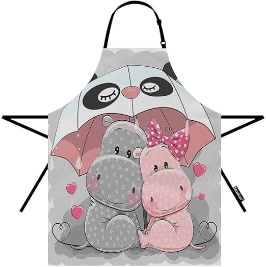 Amazon.com: Moslion Hippo Apron Cute Animal Cartoon Love Heart Couple Hippos with Panda Umbrella Rain 27x31 Inch Kitchen Chef Waitress Cook Aprons Bib with Adjustable Neck for Women Men Girls: Home &