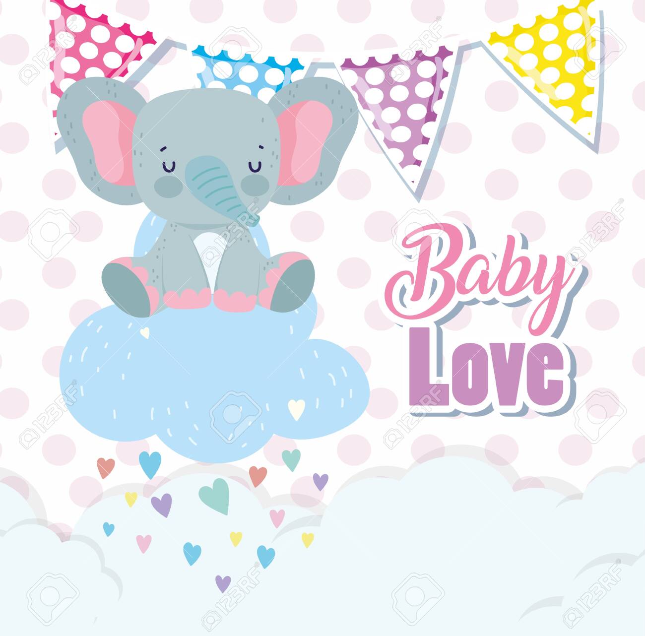 Baby Shower Cute Elephant Cloud Rain Hearts Love Cartoon Royalty Free Cliparts, Vectors, And Stock Illustration. Image 137458574.