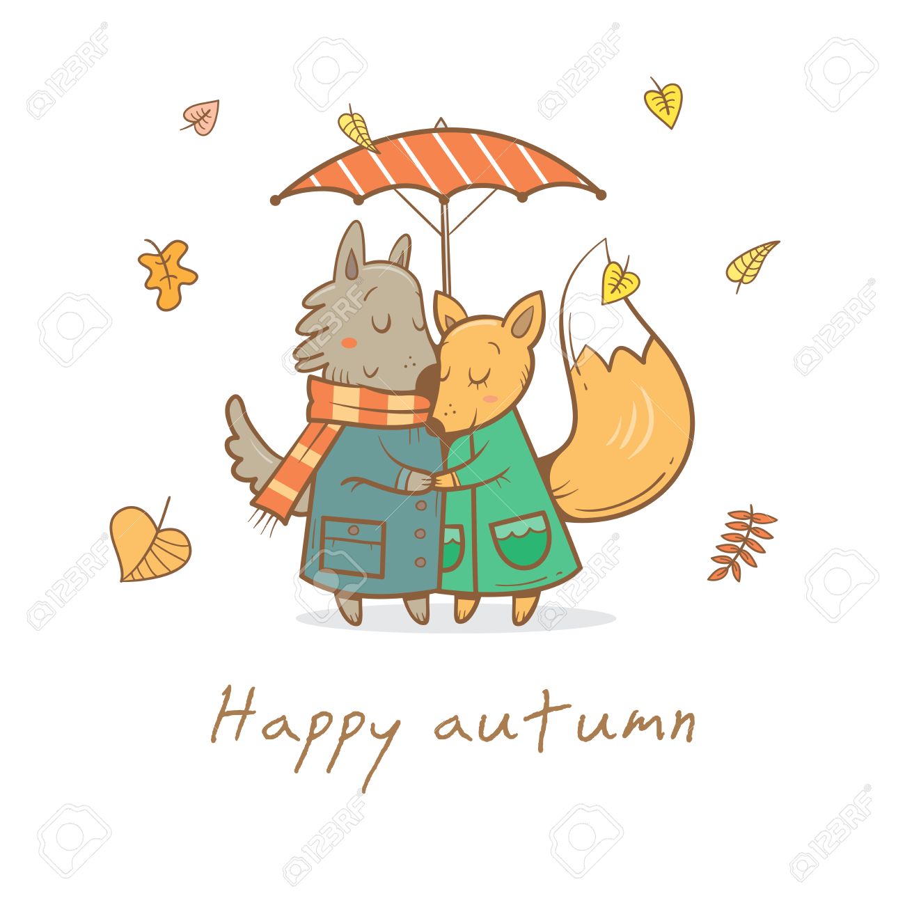 Card With Cute Cartoon Wolf And Fox In Love. Funny Animals Under.. Royalty Free Cliparts, Vectors, And Stock Illustration. Image 60335743.